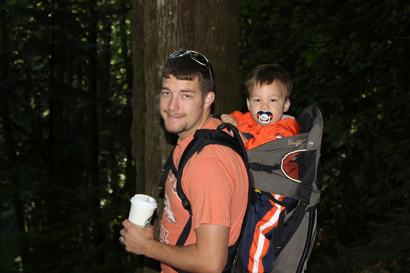 Since I'm so behind on my posts, we are going to do a series of quick updates of some of our adventures! 2 weekends ago we got up on Sunday morning, too late for church (oops) so we decided to go hiking... as you can see it was game day for the Bronco's so Jarrod got Brayden dressed and we hit the trails behind Pittock Mansion. It's nice that even though we live in the "Big City" we still have forest and places to hike right in town! And there is NOTHING that beats some family bonding time!